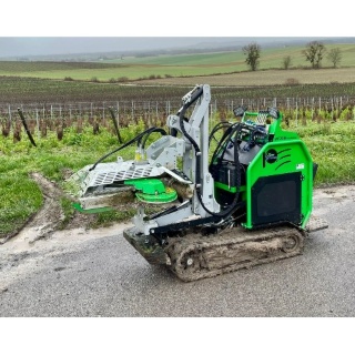 Nous proposons principalement des systèmes de tonte et broyage de l'herbe, d'aide au débardage de la vendange en caisses, ainsi que différents transporteurs à chenilles / Chenillards spécialement développés pour la vigne étroite.